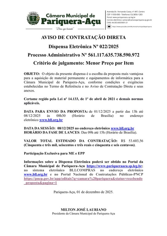 AUDIÊNCIA PÚBLICA EM 06/11/2025 ÀS 18h00
